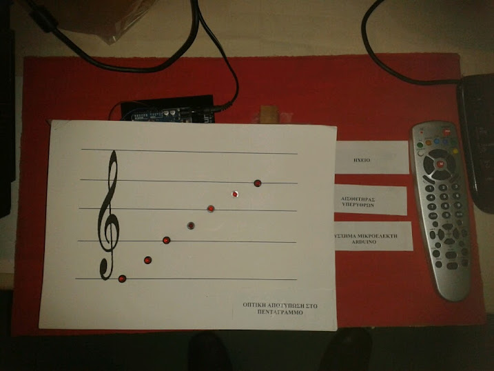 Μια διασκεδαστική κατασκευή που με την χρήση ενός τηλεκοντρόλ μπορούσαμε να αναπαράγουμε Νότες και να τις δείχνουμε σαν φωτεινά σημεία στο πεντάγραμμο. |